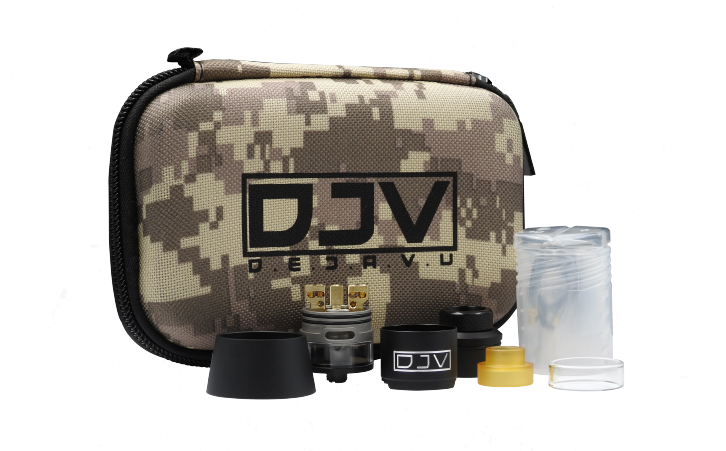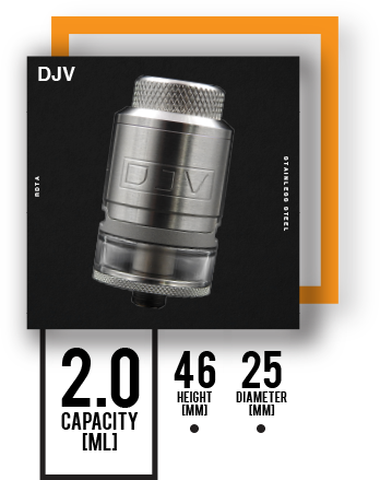 1X DJV RDTA • 1X GLASS TUBE • 2X 810 DRIP TIP [STAINLESS STEEL / ULTEM] • 1X ATOMIZER STAND • 1X ACCESSORIES BOX